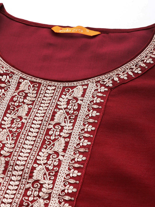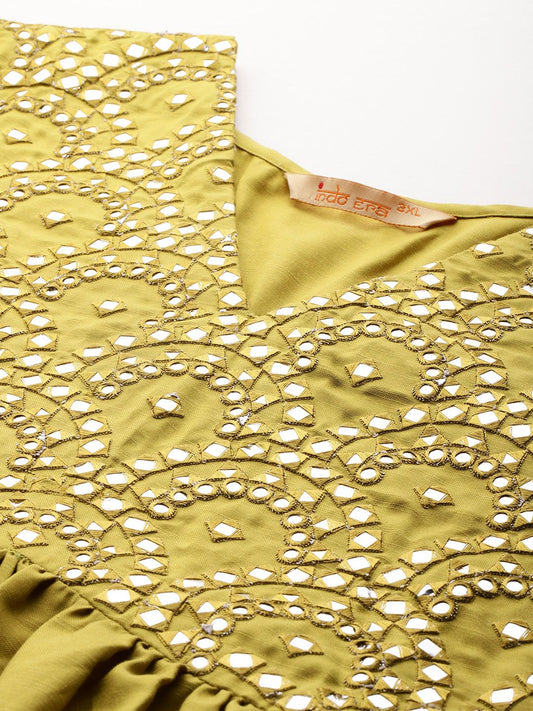 Dhiyona IE Plus Size Embroidered Empire Mirror Work Kurta With Trousers & Dupatta