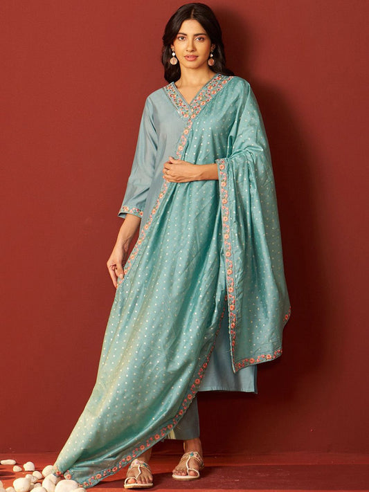 Dhiyona IE Paisley Embroidered Kurta with Trousers & Dupatta