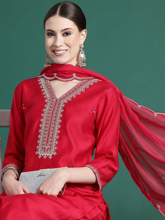Dhiyona IE Women Solid Embroidered Kurta with Pyjama & Dupatta