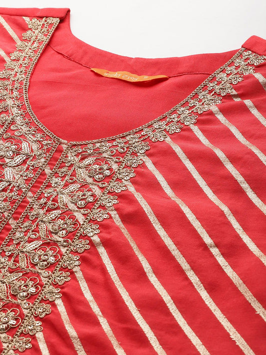 Dhiyona IE Striped Sequinned Chanderi Silk Kurta With Trousers & Dupatta