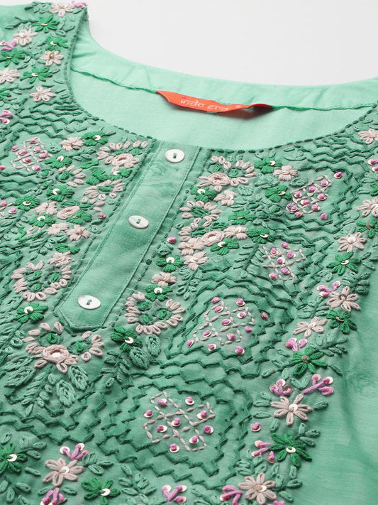 Dhiyona IE Women Ethnic Motifs Embroidered Thread Work Floral Kurta