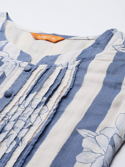 Dhiyona IE Floral Striped Pure Cotton Kurta with Trousers & Dupatta