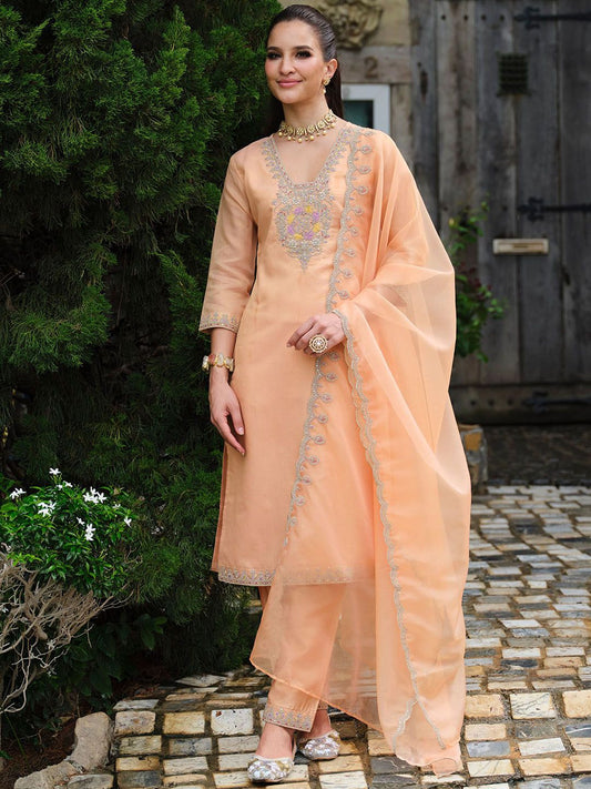 Dhiyona IE Women Embroidered Straight Kurta Trousers With Dupatta set