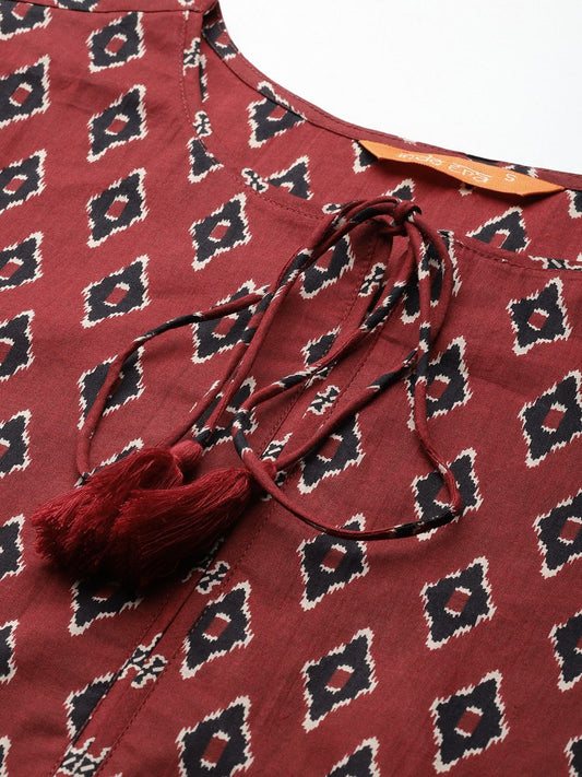 Dhiyona IE Ethnic Motifs Printed Pure Cotton Kurta with Trousers
