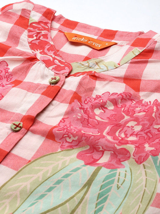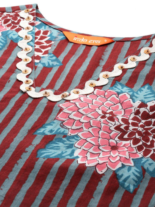 Dhiyona IE Women Floral Printed Cotton Kurta with Trousers
