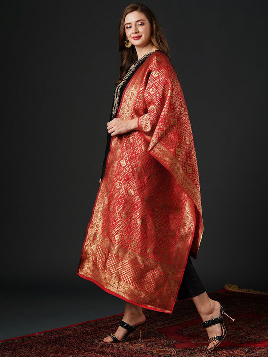 Dhiyona IE Ethnic Motifs Yoke Design Zari Kurta & Trousers With Dupatta