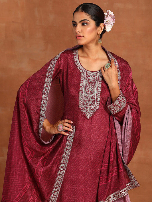 Dhiyona IE Ethnic Motifs Embroidered Velvet Kurta with Trousers & With Dupatta