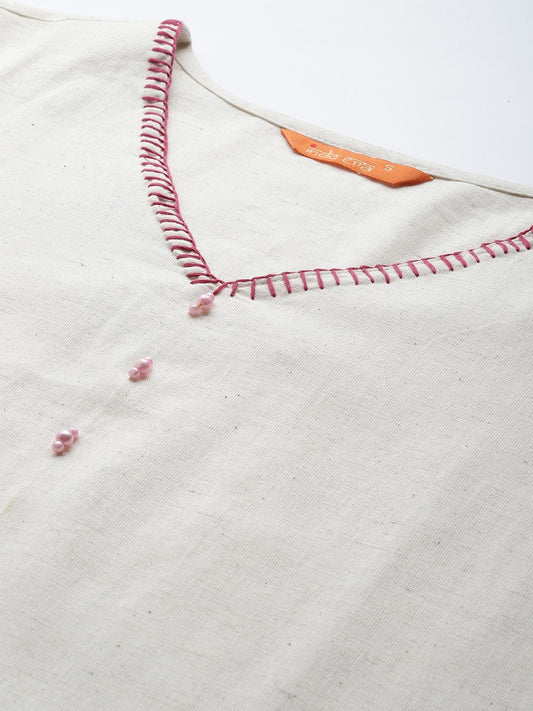 Dhiyona IE Floral Embroidered Thread Work Pure Cotton Kurta with Trousers
