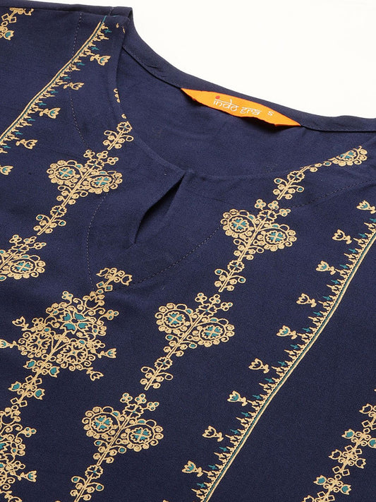 Dhiyona IE Women Blue & Gold-Toned Printed A-Line Kurta