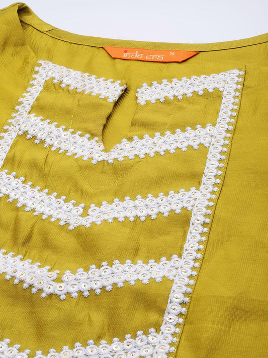 Dhiyona IE Women Green Yoke Design Keyhole Neck Liva Kurta