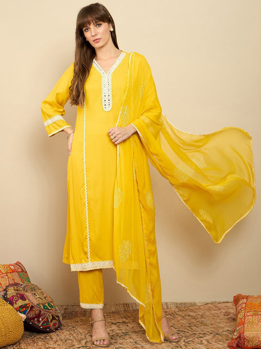 Dhiyona IE Straight Mirror Work Kurta with Trousers & Dupatta