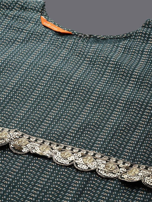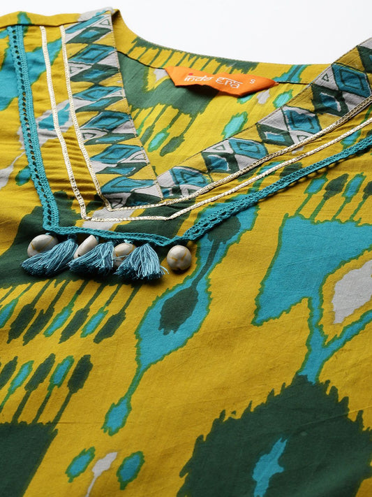 Dhiyona IE Green Abstract Printed Round Neck Straight Kurta with Trousers