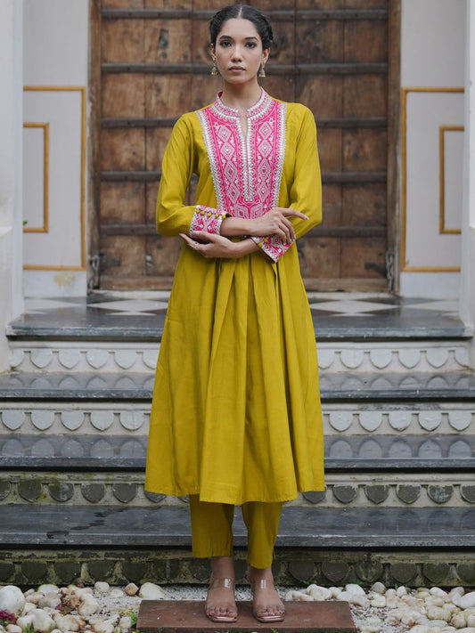 Dhiyona IE Floral Embroidered Pure Cotton Kurta with Trousers