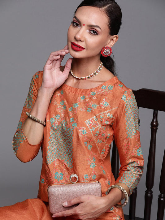 Dhiyona IE Women Boat Neck Ethnic Motifs Printed Straight Kurta