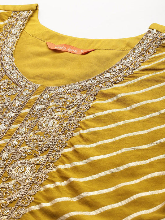 Dhiyona IE Women Leheriya Embroidered Sequinned Chanderi Silk Kurta With Trousers & Dupatta