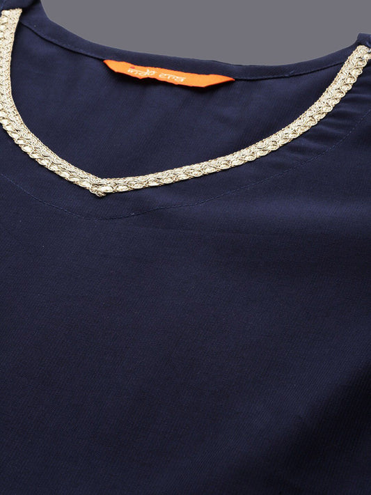 Dhiyona IE Navy Blue Empire V-Neck Sequinned Kurta With Trousers & Dupatta