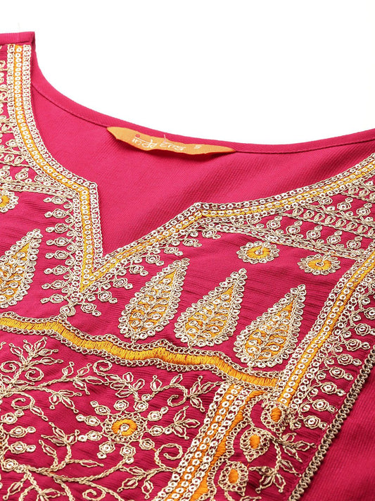 Dhiyona IE Women Ethnic Motifs Embroidered Regular Sequinned Liva Kurta with Trousers & With Dupatta