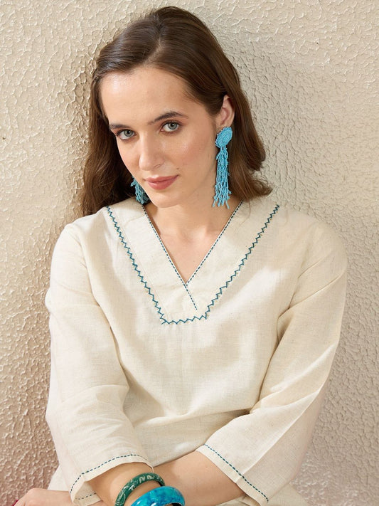 Dhiyona IE Embroidered Round Neck Three-Quarter Sleeves Pure Cotton Tunic And Trousers