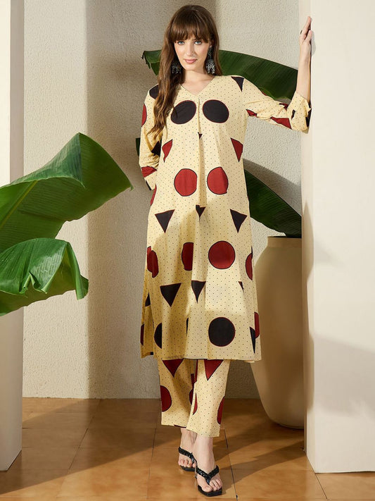 Dhiyona IE Printed Pure Cotton Round Neck Tunic With Trousers Co-Ords