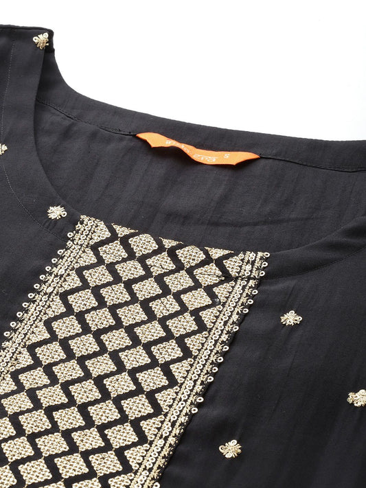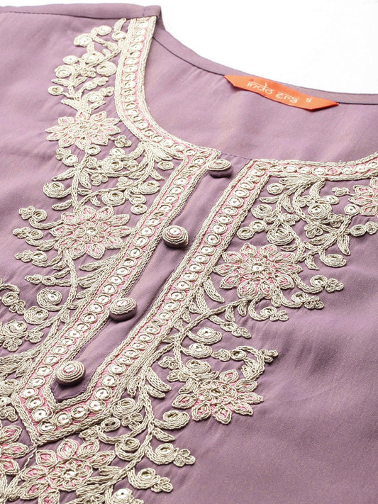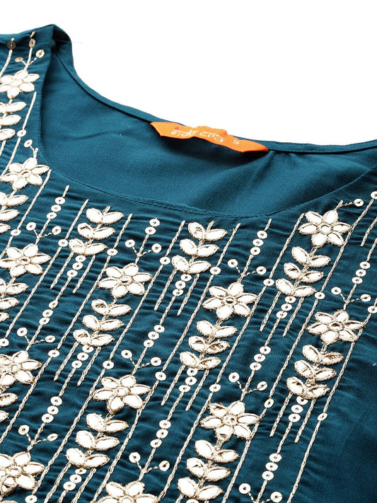Dhiyona IE Women Ethnic Motifs Embroidered Regular Sequinned Kurta with Trousers & With Dupatta