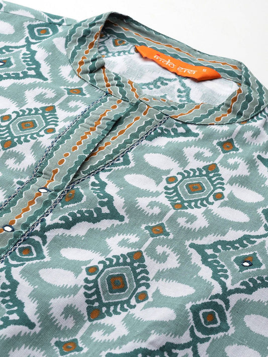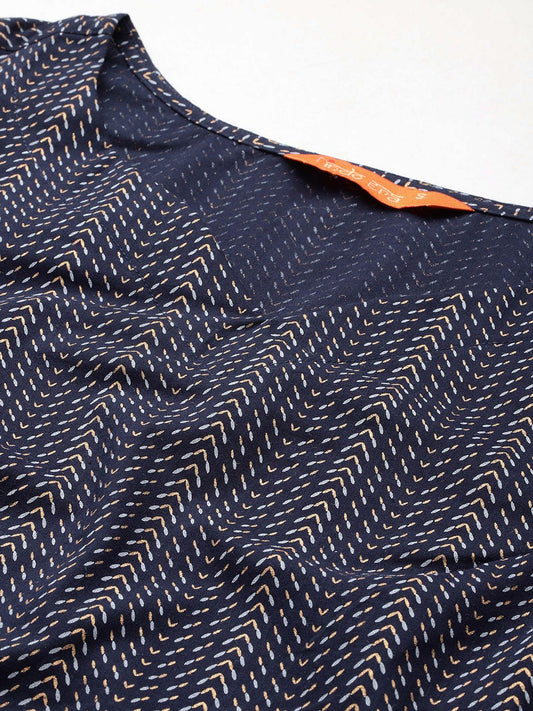 Dhiyona IE Geometric Printed Regular Pure Cotton Kurta with Trousers & Dupatta