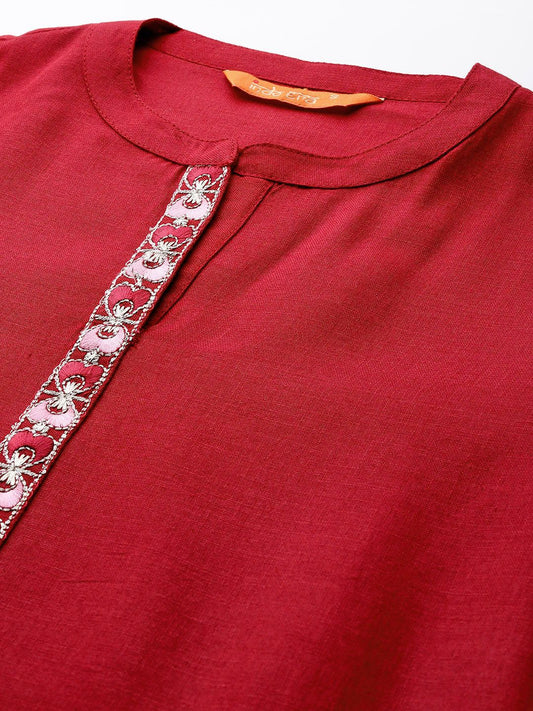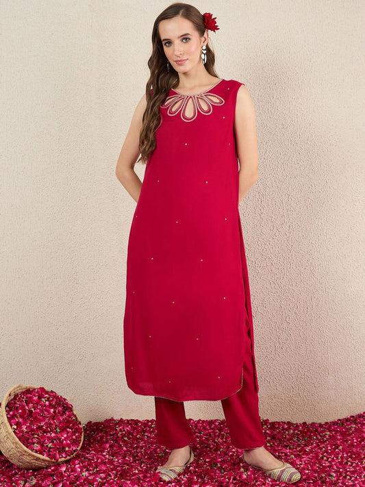 Dhiyona IE Women Solid Embroidered Kurta with Trousers