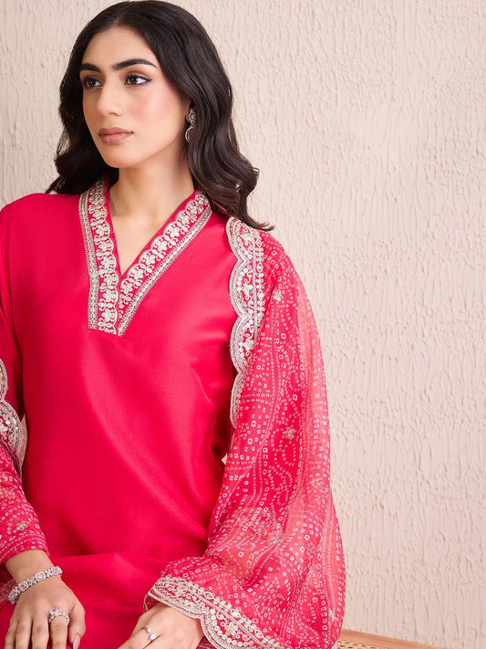 Dhiyona IE V-Neck Ethnic Motifs Woven Design Straight Kurta with Trouser & Dupatta