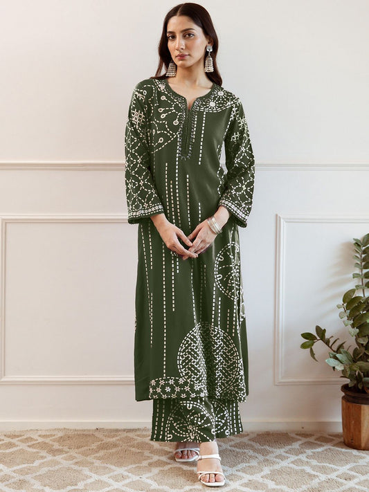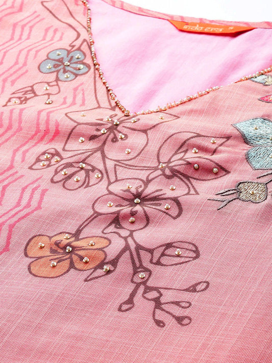 Dhiyona IE Women Printed Regular Beads and Stones Kurta with Trousers