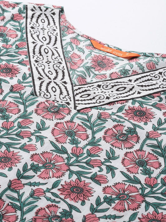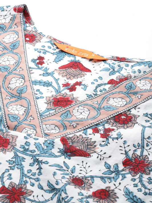 Dhiyona IE Floral Printed Pure Cotton Kurta with Trousers & With Dupatta
