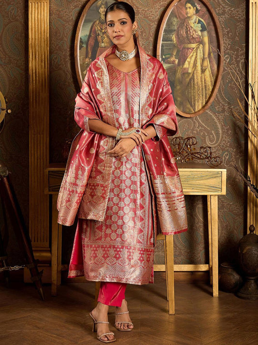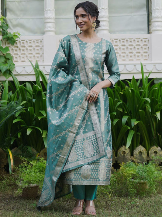 Dhiyona IE Woven Design Pure Silk Kurta with Trousers & Dupatta