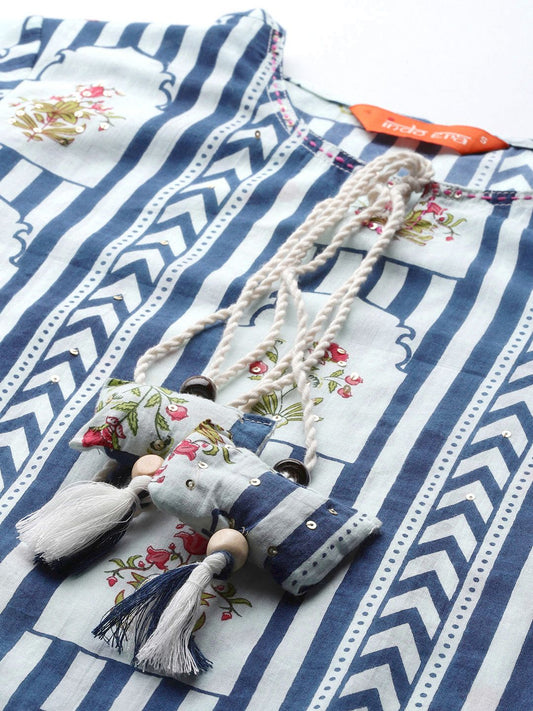 Dhiyona IE Floral Printed Sequinned Pure Cotton Kurta with Trousers & Dupatta