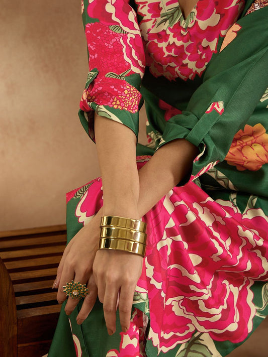 Dhiyona IE Floral Printed Sequinned Kurta With Trousers & Dupatta