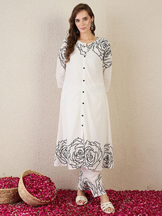 Dhiyona IE Floral Printed Pure Cotton Round Neck Tunic With Trousers Co-Ords