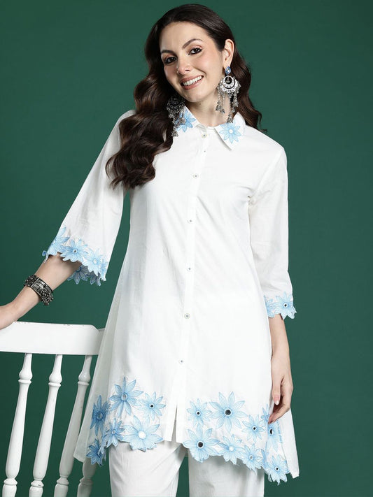Dhiyona IE Embroidered Pure Cotton Shirt Collar Tunic With Trousers Co-Ords
