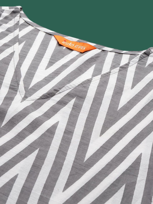 Dhiyona IE Printed Pure Cotton A-Line Tunic With Trousers Co-Ords