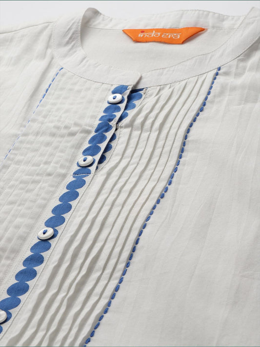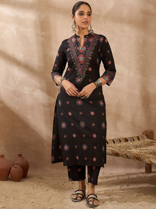 Dhiyona IE Embroidered Cotton Mandarin Collar Neck Top With Trousers Co-Ords
