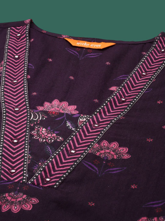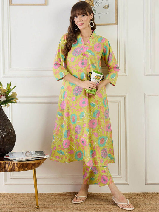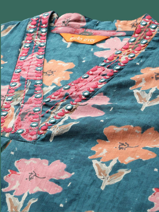 Dhiyona IE Floral Printed Cotton A-Line Tunic With Trousers Co-Ords
