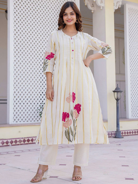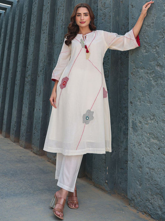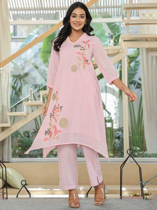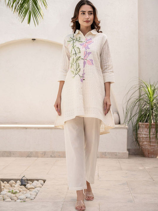 Dhiyona IE Floral Embroidered Pure Cotton Tunic With Trousers Co-Ords