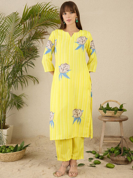 Dhiyona IE Printed Pure Cotton Straight Tunic & Trousers Co-Ord Set