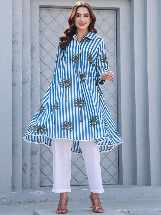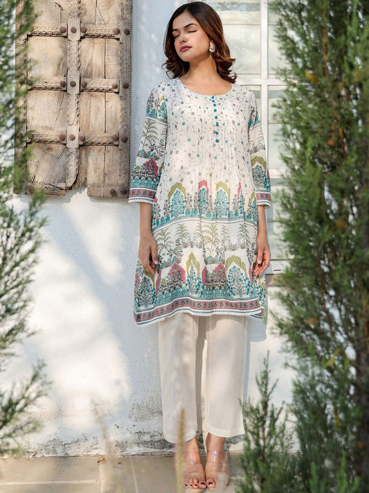 Dhiyona IE Printed A-Line Pure Cotton Tunic & Trousers Co-Ord Set