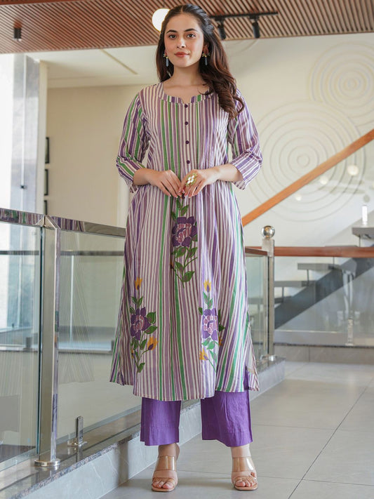 Dhiyona IE Printed Pure Cotton A-Line Tunic & Trousers Co-Ord Set