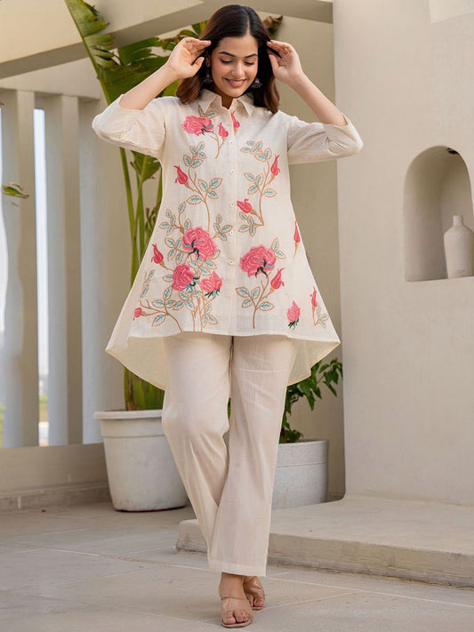Dhiyona IE Floral Embroidered Pure Cotton Tunic With Trousers Co-Ords
