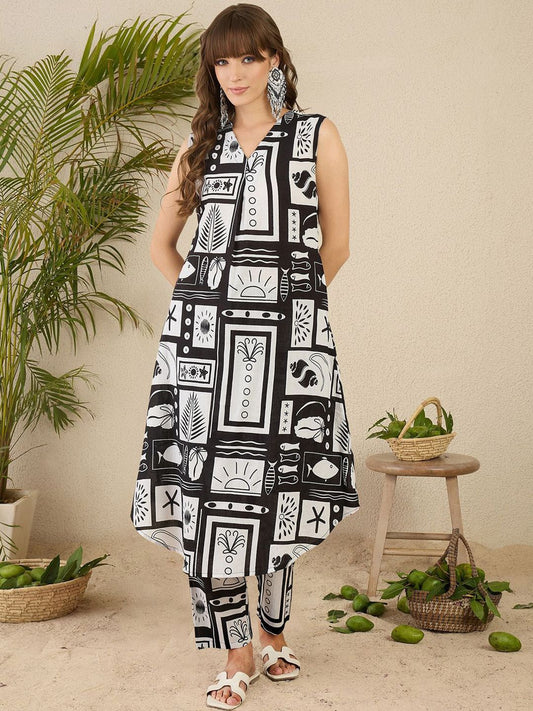 Dhiyona IE Printed Pure Cotton A-Line Tunic & Trousers Co-Ord Set