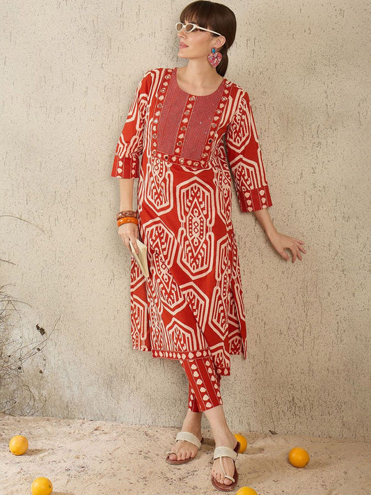 Dhiyona IE Women Printed Pure Cotton A-Line Kurta with Trouser