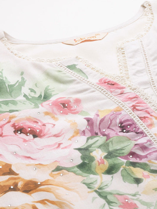 Dhiyona IE Floral Print Beads & Stones Kurta with Trousers & Dupatta