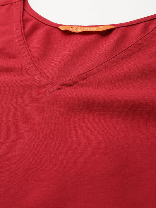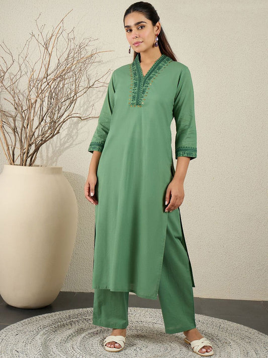 Dhiyona IE Ethnic Motifs Embroidered Thread Work Pure Cotton Kurta With Trousers