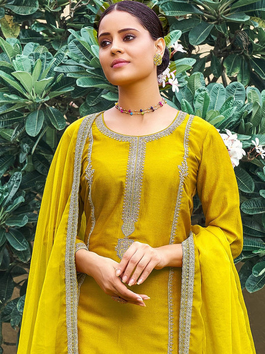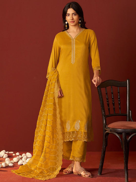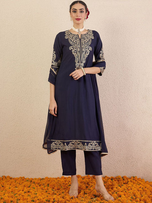 Dhiyona IE Ethnic Motifs Embroidered Straight Kurta & Trouser With Dupatta