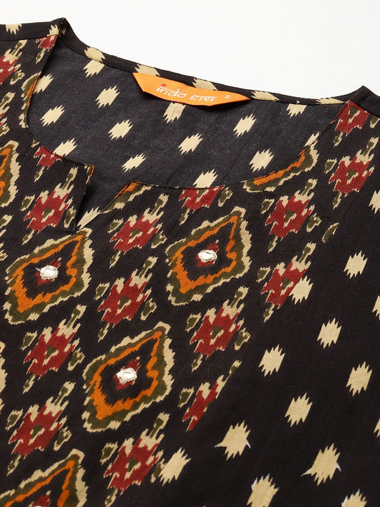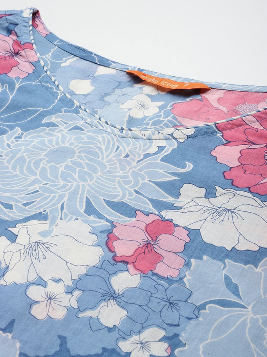 Dhiyona IE Floral Printed Notch Neck Empire Pure Cotton A-Line Kurta With Trouser