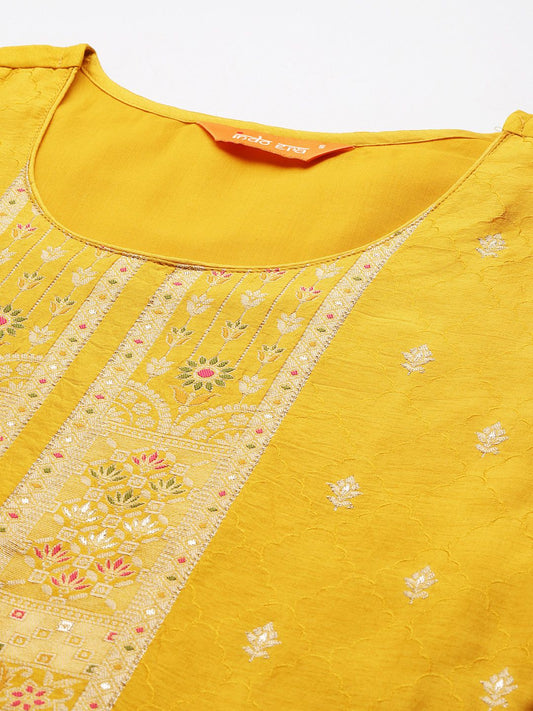 Dhiyona IE Ethnic Motifs Yoke Design Zari Kurta With Trousers & Dupatta