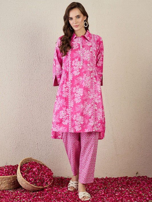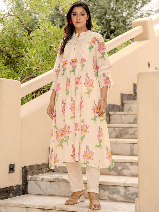 Dhiyona IE Floral Printed A-Line Pure Cotton Kurta With Trouser